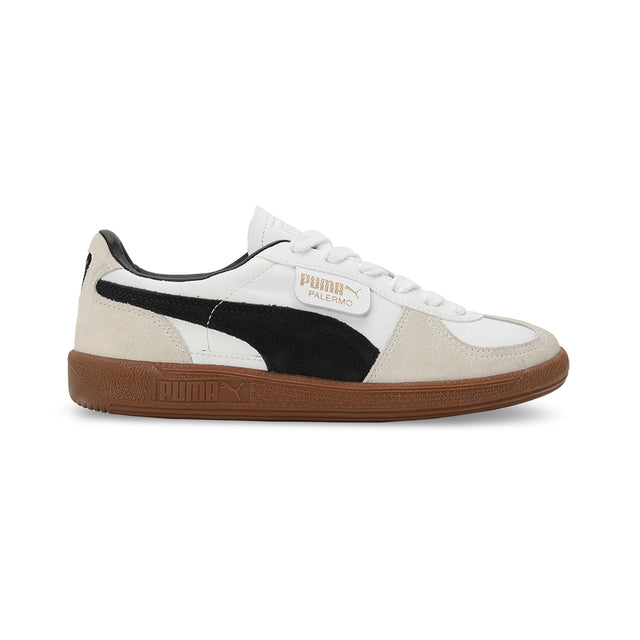 PRODUCT STORY : Straight from the archives, it’s the PUMA Palermo. Combining comfort with style, this classic terrace shoe builds on PUMA’s heritage within football, while appealing to today’s sneakerheads and fashion mavens. This execution features a leather base with a suede Formstrip and overlays. Designed for effortless versatility, it’s the perfect blend of retro style and modern appeal that complements any outfit.FEATURES & BENEFITS : ORTHOLITE®: Provides step-in comfort and long-lasting cushioning, DETAILS : Leather base, Suede Formstrip, T-toe and heel overlay, Synthetic tongue, eyestay and quarter panel underlay, Debossed PUMA branding on tongue, Printed PUMA branding on quarter panel flap, Screen printed PUMA branding on FOT.